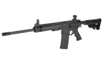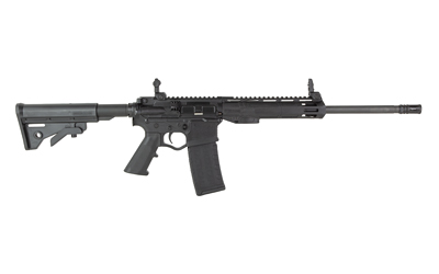 The ATI Alpha Maxx RIA Rifle is a semi-automatic rifle chambered in 5.56 NATO, featuring a 16-inch barrel and a 30-round magazine capacity. It features a threaded barrel and a 9-inch M-LOK handguard for easy attachment of accessories. It also includes flip-up sights and an adjustable stock.