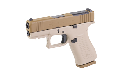 Chambered in 9×19, the G43X MOS has slide cuts designed for specific micro-optics and the GLOCK Slim Mounting Rail for attaching accessories. It is the ideal tactical partner in the well-known GLOCK Slimline design for easy concealment. This exclusive model features a custom Two-Toned Tan Cerakote finish by Shark Coast Tactical.