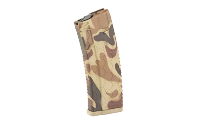 The HEXMAG HD magazine is ideal for any sport, competitor or tactical shooters demanding superior strength, proven reliability and exceptional performance. HEXMAG’s newest feature that combines their best POLYHEX2 mags with an incredible coating to further enhance the design and style of your HEXMAG. Hydro dipping, also known as water transfer printing or hydro graphics, is a method of applying decorative designs to three-dimensional objects. It involves floating a thin, printed film on water, then immersing the object into the water, where the design adheres to its surface. This technique allows for complex patterns and artwork to be transferred onto a wide range of materials and shapes. This process bonds in a way that is super durable and keeps looking good for years to come. The HD mags incorporate all of the Series 2 features including redesigned feed lip geometry to maximize strength and versatility, stripper clip guides for faster reloading, deep catch pocket for rock-solid stability and a heat-treated stainless steel spring for extended storage periods.