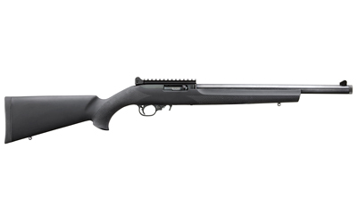 The 10/22 with black Hogue OverMolded stock provides a soft, recoil-absorbing feel without affecting accuracy. The bull barrel features a 1/2″-28 threaded muzzle and is fitted with a thread cap which can be removed to allow for the use of muzzle accessories. This 10/22 rifle also features a Picatinny rail with adjustable rear aperture ring sight and a non-glare blade front sight while retaining popular 10/22 features.